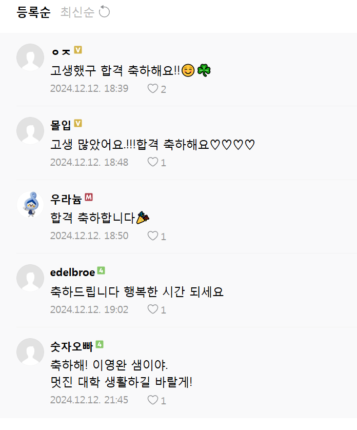 첫 최초합이라 많이 행복해요 정말 감사합니다 ㅠㅠㅠ
