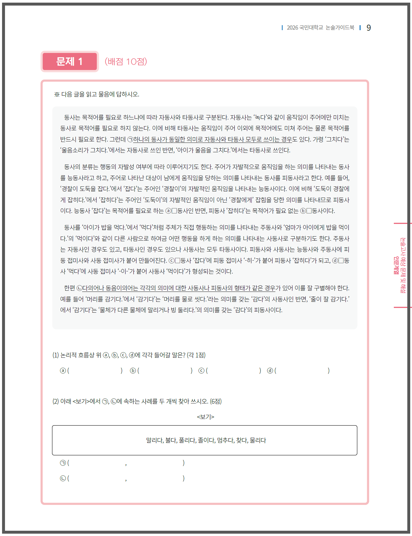 위의 이미지는 국민대 논술 가이드북의 표지입니다.